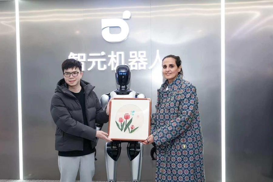 智元(AGIBOT)今天迎来了两位国际重磅嘉宾的到访——2025年诺贝尔经济学奖得主、著名经济史学家Joel Mokyr教授,与卡塔尔王室核心成员、全球艺术及投资领域领袖玛雅莎公主(Sheikha Al‑Mayassa)。
